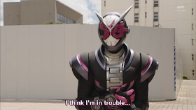 Cutting back to Sougo who has returned home, only to see Woz is there and what Woz does is describe that the Evil Kamen Rider Build was caused by a change in history. Sougo gets worried about Kiryuu Sento/The Real Kamen Rider Build but Woz shrugs it off and says that he doesn't know what happened to him... That's a scary sign if I ever saw one. Woz also states that Sougo is not yet strong enough to defeat Evil Kamen Rider Build and also tells him that Geiz is fighting Evil Kamen Rider Build as they speak. Cutting back to the battle we see that Evil Kamen Rider Build is beating the crud out of Kamen Rider Geiz but Kamen Rider Zi-O comes in and saves Kamen Rider Geiz.