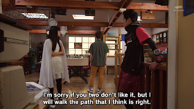 I'm a bit mixed on the robot battle though, it was mainly punching but that wasn't the part that bothered me. What bothered me was the effects, the CG kept on switching between from looking good and natural to ugly and awkward. The trippy background spinning kamen transformation effect has returned and it has been improved on, it looks much more smoother and it doesn't hurt my eyes and I love how it is being used now.