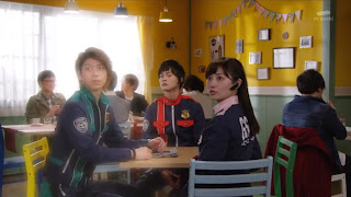 The episode begins with a busy day in the Lupinranger's restaurant, even the Patrangers are there as customers again. Talk is going on all over the place, including a case of disappearing people in a steak house to which Sakuya boldly announces "OH! THAT IS WHERE I WAS GOING TO ASK UMIKA OUT ON A DATE TO." Guy has swag. Am I right? And, with no shame at all, he approaches and asks her out immediately after to which she is clearly not interested but doesn't know how to say "no". The other two Patrangers drag him out while apologizing but not before he forces Umika to take his phone number. Taking notes single men? Don't!While leaving, Tsukasa and Keiichiro confront Sakuya about that display, also asking if he is serious. To which he replies that maybe he just likes to hang out with cute girls. lovable doofus to a bit of a scumbag in one sentence. Cutting back to the restaurant, Umika is upset with the others for not helping her but Kairi says she should cozy up to him to try and get information out of them. Everyone is a scumbag today it seems. She throws out the number and shutters with disgust when Kogure shows up with their next target.