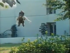 Kamen Rider catches up and jumps on Eagle Man's back and starts riding him like Hercules riding Pegasus, it's quite a sight to behold. Kamen Rider then rips off one of Eagle Man's wings, knocks him to the ground and defeats him with one kick and thus Eagle Man has been defeated. The hypnotic effects on all of the psychics has faded away and so have their powers, now they are back to being friendly painters again and not crazy psycho psychic yuppie anymore. Everyone is happy and so should you as that is the end of the sixth episode of Kamen Rider Black.