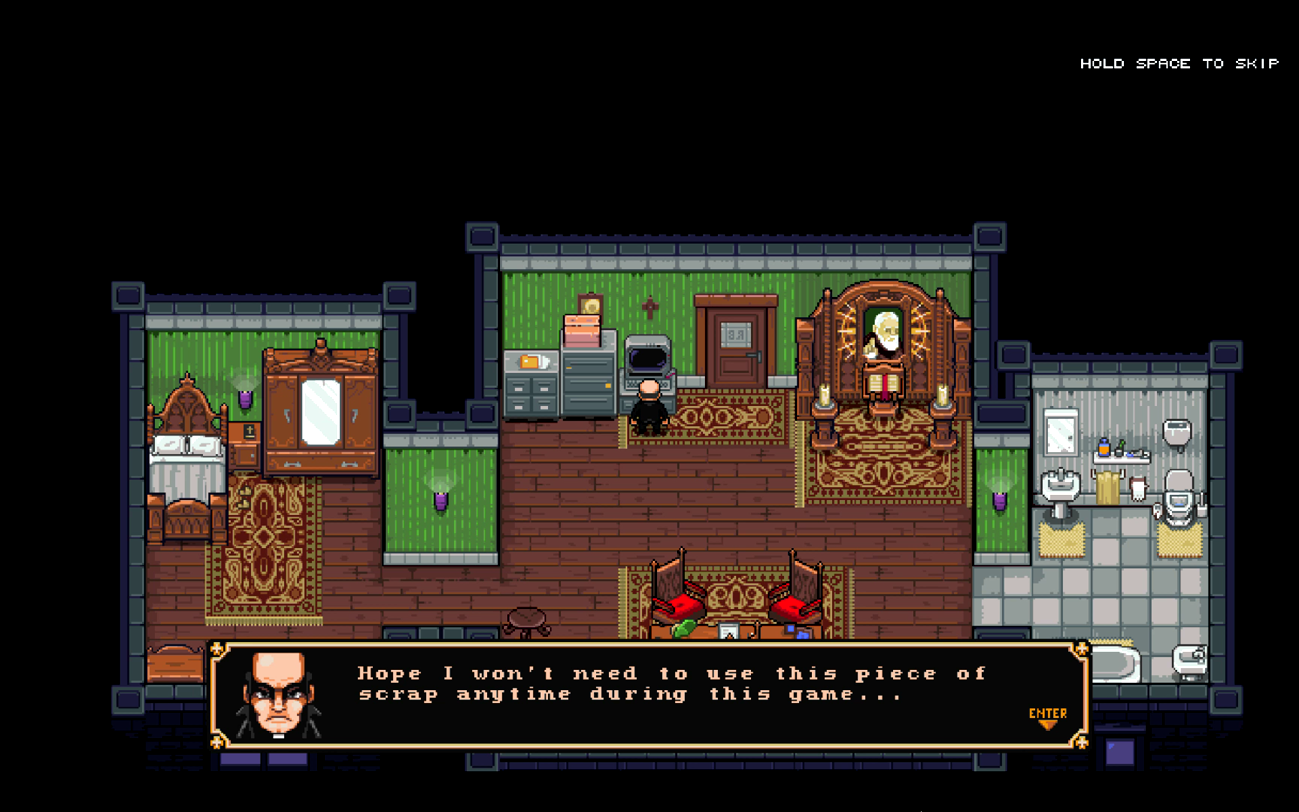 The game advertises exploration, but so far it is a very linear campaign. It is possible that the full game will introduce elements, but for now there is not much to comment on. In-between exorcist targets there are some minor information gathering puzzles. Other than these simple puzzles, there is only dialogue separating battles. Not a flawed formula, just very simple.