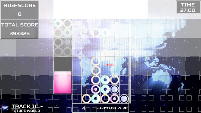Now here's one of the vital elements of the game. If the music in this game isn't good, it ruins what this game is meant to be. Well, that's what this game makes itself out to be. The music in this game is full of EDM AKA Electronic Death Metal (kidding). Yeah, I know that "EDM" means Electronic Dance Music and this game is sure full of it (wait. I already said that). Most of the music isn't bad and does have a fun sound although I wasn't a fan of the music found in the second campaign. The beat of the music doesn't go with the manual block clearing element what so ever. Like I had said earlier, you gotta hit the clear button at a certain time. Does this out of beat button pressing ruin the experience? No! Not what so ever.