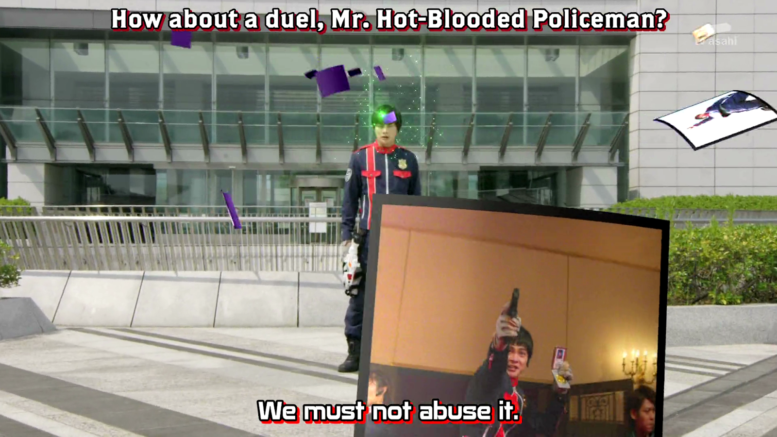 Shockingly, a little bit of plot development is here. The Lupinrangers ask Noël Takao why he has both the Patran X and Lupin X powers and he replies that he believes that both the police and phantom thieves are necessary. This statement, is quickly shot down by the 3 main Lupinrangers as all of them see the Patrangers as a threat of destroying a collection piece.