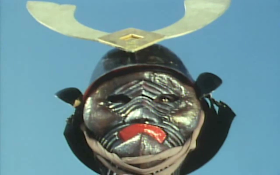 Now, all that is left is the battle. Akarenger chases after Golden Mask and is later joined by the other 4 where we get the first every Super Sentai Roll Call. This fight scene is very slow paced by today's standards. Most of the foot soldiers (which are called Zolders) abandoned their machine guns for swords and do a lot of standing still waiting to get hit as the Gorengers jump through the air a lot. The Gorenger's weapons appear from their visors using some simple cuts, most of them are simple arranging from a whip, boomerang, bow & arrow, no weapon for Kiranger, and a mirror. What?