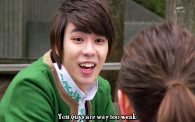 Back at Ui's house, Ryusoul Black cures Koh and introduces himself as Bamba, and green as his brother Towa. Koh is excited by their arrive and ignores all of Towa's insults. Moments like this make it feel like they really want Koh to be Daigo. It is also revealed that there is an easier way to defeat the Minusaurs, and it involves human sacrifice. Oh goody.