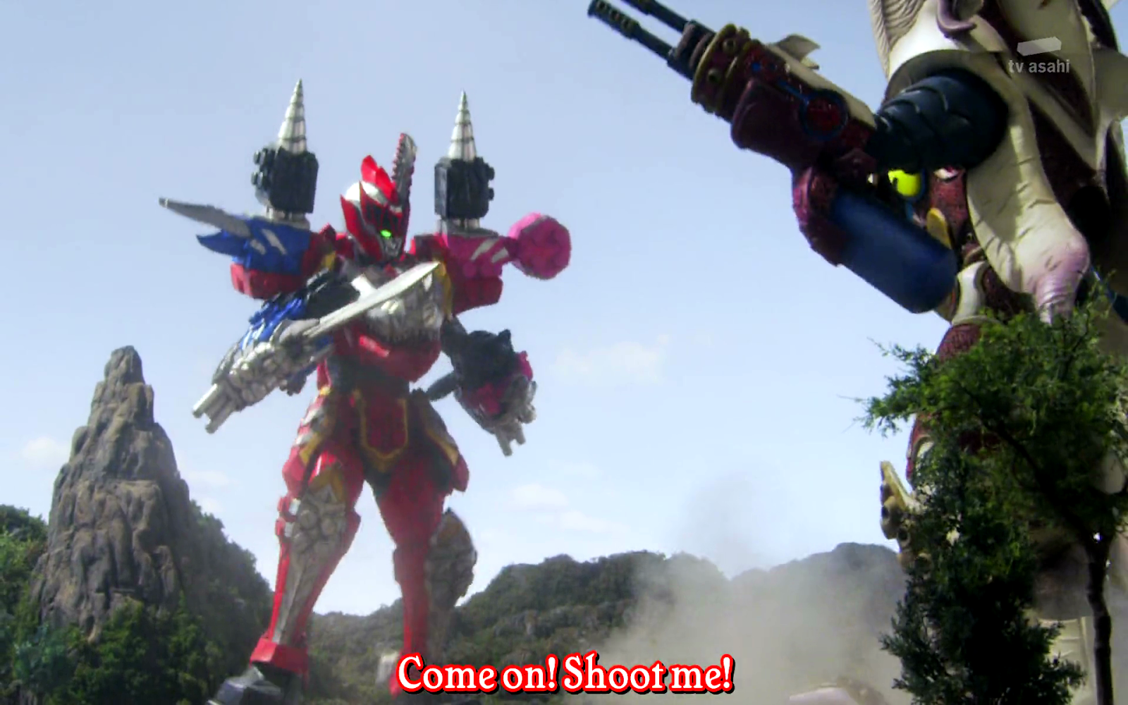 Things are not going well for the Ryusoulgers, the Minusaur has them kept at a distance by continually shooting and they can't close any ground. Clearly this struggle is just setting up for a new mech combination, but you got to appreciate a monster using genuine fighting strategy.