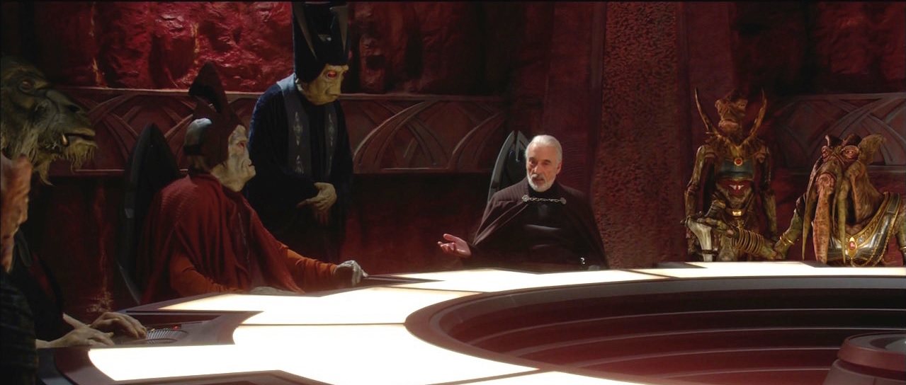 All the political subtext and narrative grayness that could've been introduced by presenting the Separatists as a well-meaning political organization with hawkish members is completely swept aside in favor of them being led by an obvious Sith Lord and the mustache twirling droid makers who want to murder Amidala. This film could've been fascinating but the movie presents politics as a narrative shorthand, rather than an active instrument which effects the plot; and the film is all the worse for it.